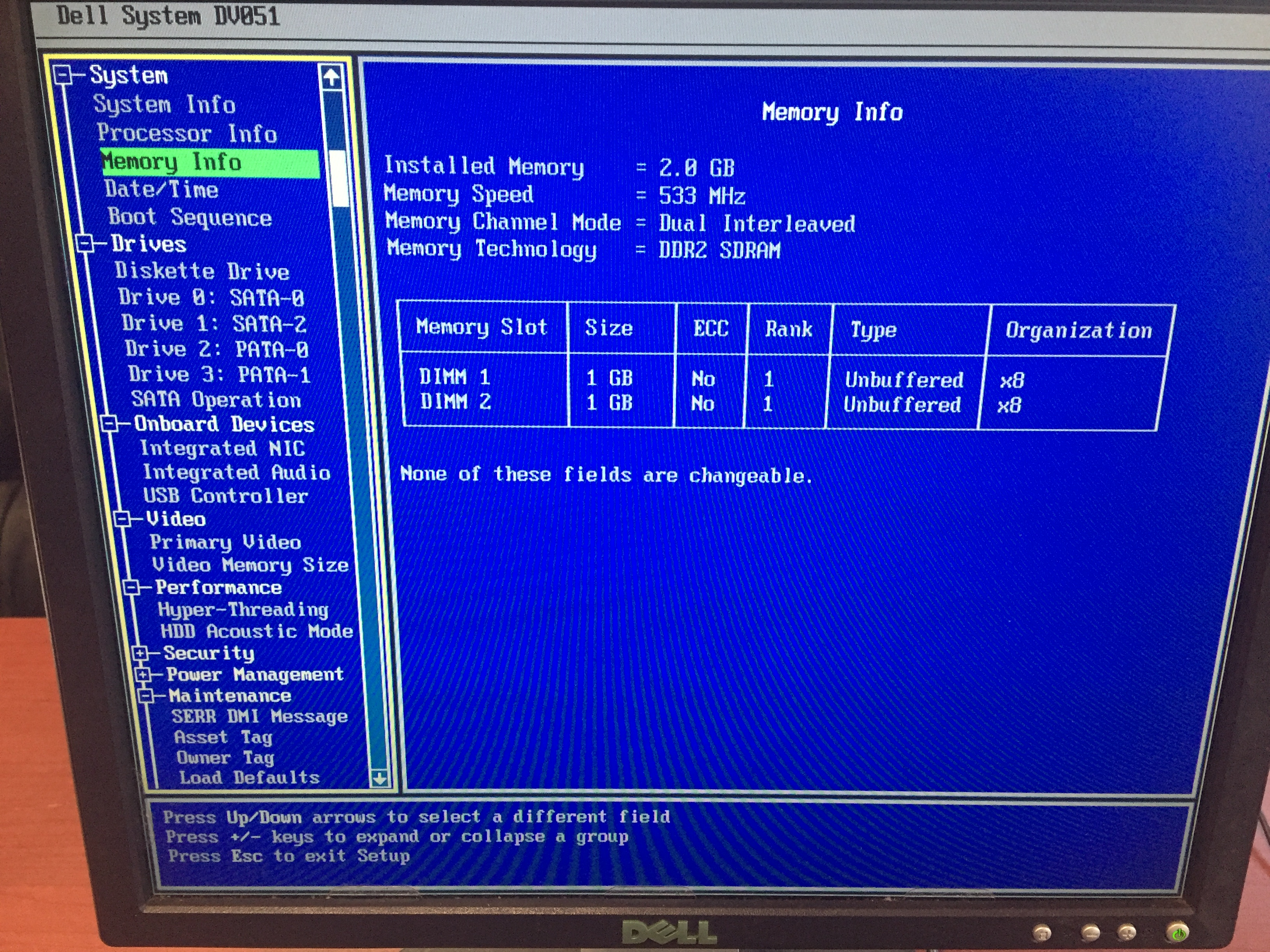 So, the interesting thing about this is that she has two more Dell Dimension 3100 PCs on hand that are not in use, so I have spare parts to work with. How delightful, no need to wait on parts orders! Or so I thought. For clarification purposes, these PCs use DDR2-533 MHz memory. System 1 (her “active” system) has 2×1 GB installed; system 2 (her first donor PC) has 2×512 MB installed; and system 3 (her second donor PC) has 2×256 MB installed. In today’s terms, this RAM sucks. I clearly want her to max out the RAM she’s capable of using with her Pentium 4 CPU… which, sadly, is 2 GB. Other than the RAM, all three systems are 100% identical parts-wise, which means zero trouble swapping parts as far as Windows 7 is concerned.